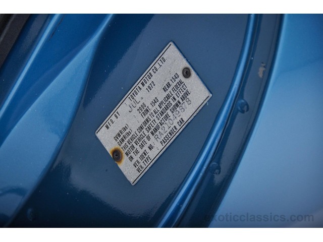 Exotic Classics is pleased to present this brilliant 1972 Toyota Celica ST coupe. This car is reported to be a one-owner car that spent its life in the state of Georgia. It still has the original window sticker. The odometer shows about 16k miles, but we believe that the true miles are 116k. In 2010 the car received new paint, seat upholstery, and engine rebuild. At that time the engine compartment and undercarriage were detailed and the suspension components refreshed as necessary. The car has Toyota’s venerable 18R-C 4-cylinder engine and 4-speed manual gearbox. Dealer installed AC was fitted from new. Notice that the car still has the original trunk mat and tire cover. The car also has tools and manual, and it is very rare to find a set of unmolested original hub caps as are still fitted to the car. These early Japanese sporty cars have a poor survival rate, and examples like this are difficult to find. The car is a delight to drive.