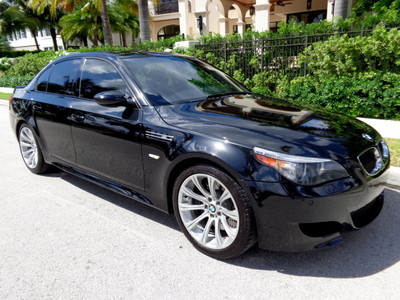 Hi and thanks for stopping by to view our, "No Reserve", auction for this, clean Carfax, amazing, Florida, 2006 BMW M5 super sport sedan with SMG transmission, navigation, winter package and front and rear park assist! She has been thoroughly inspected, serviced and is ready to go. According to the Carfax report below she is $120 above retail book value. The "M" stands for "Motorsport," and the "M" versions of BMW's fine machines provide increased performance by way of their high-output engines and sport-tuned suspensions. Slight body tweaks with special wheels and sport seats. This, M5 has been, well kept and maintained throughout its life. As you can see from the many detailed photos taken, the "Sapphire Black", metallic, exterior shines like the Florida sun! Looks great, real straight! The, "Black", premium leather interior is in real good shape also! No rips, no burns, no tears. Supportive seating in the front and rear! I have personally, test-driven this, amazing, sports car and I have to say, "I was floored by its power and performance" most of all, tight handling and excellent style. This 2006 BMW M5 has been an all-conquering hero. In arguments around this office, its name is regularly invoked to slap down the claimed merits of other performance cars, even those considerably more expensive! The stunningly fast 5.0L, V10, 500hp, engine feels and sounds like a race car with the, 7-speed, paddle-shift, automated manual, Sequential Manual Gearbox (SMG). It works by electrohydraulic shifting manually (via the paddles behind the wheel or the console-mounted shifter), the third-generation SMG works wonderfully, cracking the throttle before blindingly fast downshifts and upshifting with rapidity that will win most stoplight races. An array of 11 different settings control shift point and speed, as well as clutch slip! The SMG can go from boulevard auto tranny cruiser to hammer-shifting redline blasts with the push of a button. Features: Navigation, iDrive(integrates the audio, climate and navigation systems, and can also store the driver's personal settings for the car's stability control and adaptive damping systems), 16-way power driver and 14-way passenger front sport seats, winter package(heated front seats), dual front seat memory, dual power lumbar, power front seat extensions, premium leather seating, 19” alloy wheels, SMG, 7-speed, transmission, front and rear park assist, headlight washers, compass, cruise control, homelink, rear spoiler, gigantic drilled front and rear ABS disc brakes, interior trunk release, M5 embroidered floor mats, heated and folding exterior mirrors, satellite radio ready(subscription service), keyless entry, tinted glass, front seat back storage, dimming rear-view mirror, alloy-look interior accents, traction control, external temperature display, power tilt and telescopic leather steering wheel with shift and audio controls, tire inflator pump, rear defogger, CD and DVD player, CD changer located in the glove box, good condition tires, front and side airbags, Xenon headlights, rear defogger, first aid kit, push button start/stop, rear door child locks, 12V outlets, tachometer, owner's manual, compass, dimming interior rear view mirror, engine immobilizer, separate climate controls, rear ventilation ducts, power windows, locks, mirrors and glass sunroof which works perfectly, clean Carfax and so much more. What's really so unbelievable is the overall,  condition of this super M5! The air conditioning in this beauty is ice cold! The dynamics of the M5 have car reviewers frothing at the mouth to describe the joy derived from piloting this vehicle. From its communicative steering and near-perfectly balanced chassis to the compliant-yet-firm ride, this Bimmer, like most others, will have you searching for that elusive twisty road upon which to spool the revs and extract that stunning exhaust note. The BMW 5 Series was also named a "Best Pick" in IIHS frontal-offset crash testing. Astonishing performance, prodigious thrust, truly a bargain compared to its competition! All of our vehicles are free from any and all liens. You will receive a clean title. We also use our detailed pictures as a physical description so look at them all. Pre-sale inspections are welcomed and encouraged. Read our "terms and conditions" below. Please do not assume anything. If you have any questions about this or any of my other auctions or would like a "buy it now" price through eBay, please feel free to contact me, Avi Fraser, via email at surewecanmakeadeal@rollingwheelsinc.com or you can call me, in the office, at 954-527-5522 and I will be happy to help you. We are always willing to negotiate and 4 SURE, WE WILL MAKE A DEAL WITH YOU! Thank you for your interest and I look forward to hearing from you! Visit our location at Rolling Wheels 125 E. Sunrise Blvd. Ft. Lauderdale, Fl. 33304. We are open, M-F, 9am-5pm. Saturday, 9am-4pm. Closed Sunday and holidays.