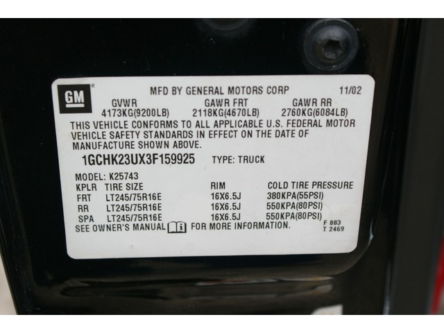 • VIN: 1GCHK23UX3F159925