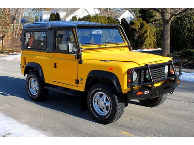 Everyone knows how hard these Defender 90's are to find these days. This vehicle has become one of the most sought after Land Rovers to have been made. The Defender 90 is such a hard find that people are buying them in sub level condition for high dollar amounts. We are offering this Defender 90 at a very reasonable asking price and its a well conditioned vehicle. This Defender 90 has a clean interior that does not show any signs of heavy wear and tear. The Exterior paint in not pristine but shows well on the truck as a daily driver. There is no rust to be found in the doors, wheel wells or foot wells for that matter. The vehicle runs and drives without flaw. This Defender 90 has lots of receipts for service and restoration and a clean vehicle history report as well. If you were looking for a hard to find Defender 90 in turn key condition then look no further. They wont be making any more of these amazing trucks and they are only going to go up in value as time goes by. You can be one out of only 1943 owners of this vehicle imported to the US for that year!!