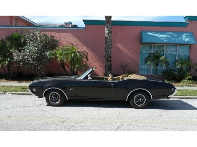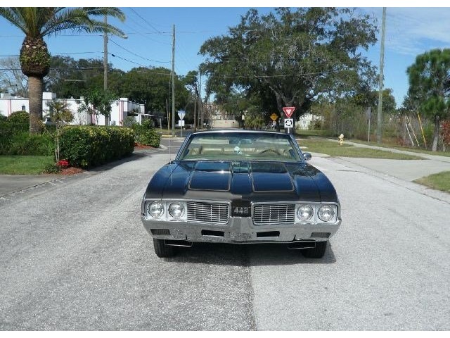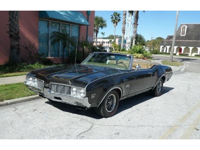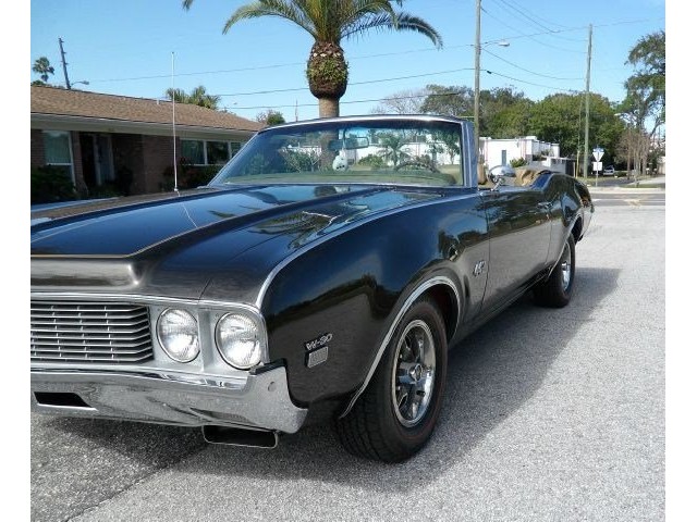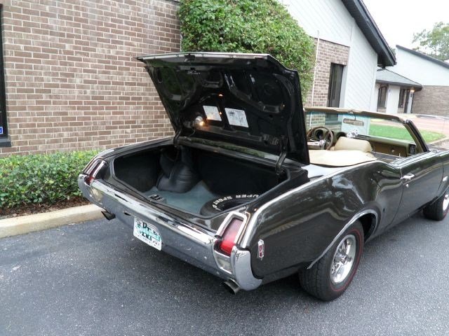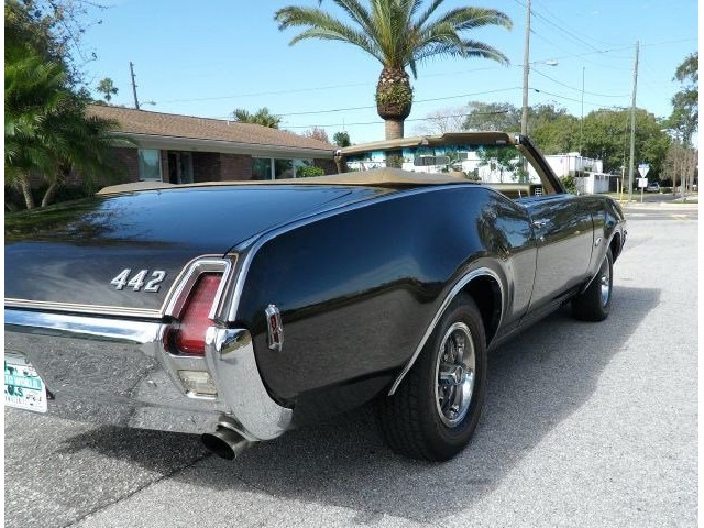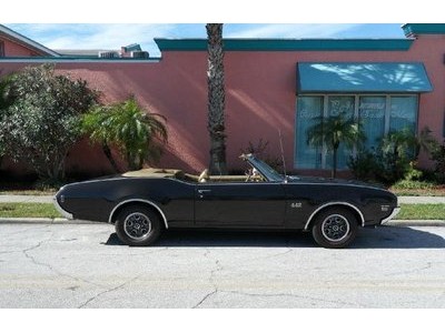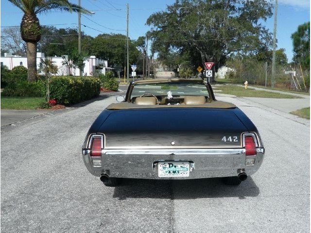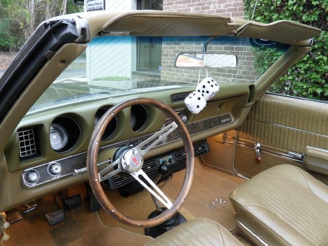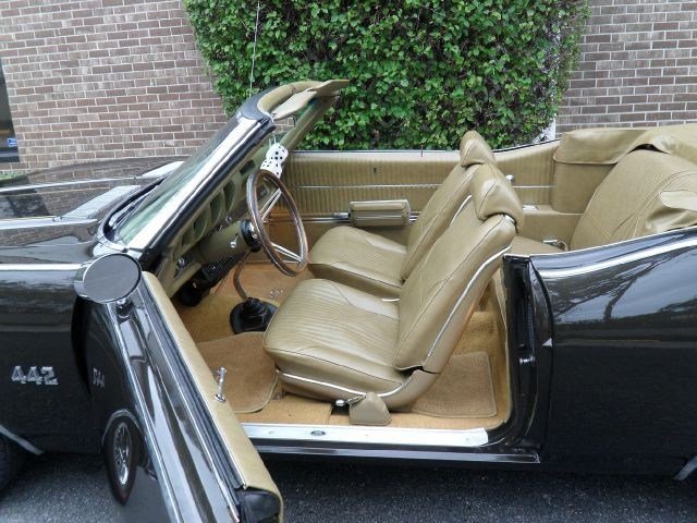 1969 Oldsmobile 442 Convertible For Sale (Real 344 VIN Code 442 Muscle Car) Numbers matching 400 cubic inch engine, D code heads, 4 barrel quadrajet carburetor, original M-21 Mucie 4 speed manual transmission, 12 Bolt 3.91 posi rear end, dual exhaust with notched rear bumper, power steering, disc brake car ( power brakes added by previous owner), 14 Superstock II wheels with BF Goodrich radial red line tires, Code 61 Sable exterior with gold accenting pin stripe, forced air induction scoops, Sable brown metallic exterior with gold accenting pin stripe, drivers remote mirror, power canvas convertible top with glass rear window, top boot, Dark Fawn bucket seat interior, Hurst shifter, rally dash with 6,000 red line tachometer, factory radio with AM/FM conversion, dealer installed under dash A/C, original owners and warranty book, W-30 options. Don't miss this rare find, nothing like getting behind the wheel of 4 speed convertible muscle car!!!