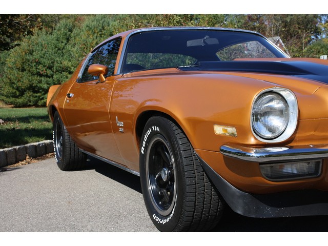 • The Camaro Z28 for 1973. We think it’s one very beautifully styled automobile. And more than a few people agree with us.The top-rated 350 cu in (5.7 L) V8 producing 245 hp (183 kW; 248 PS) in the Z28.[6] The engine also switch from solid-lifters to hydraulic tappets. Air conditioning became available as an option with this engine. This a great drivers car, with its wicked orange paint,and the rumble of that 350,it will get you blood flowing.  This clone come with A/C witch is a great option to have and did not come with alot of these. You can see more shots at http://eccigi.com/