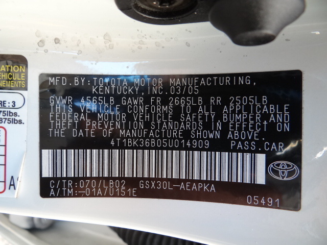 VIN: 4T1BK36B05U014909   Interior Color: Tan