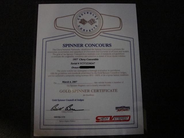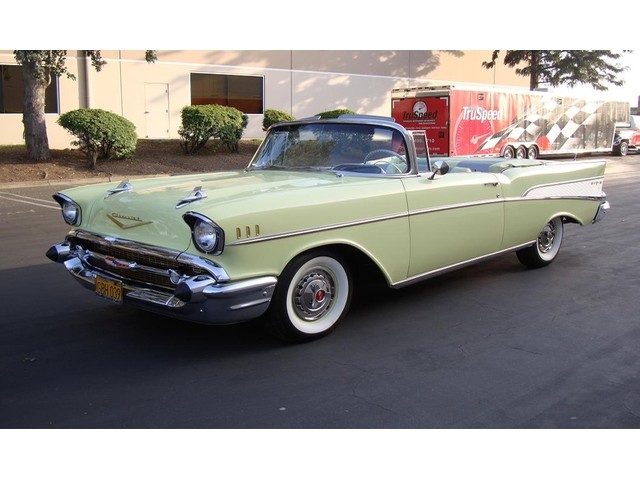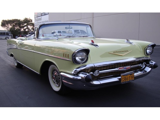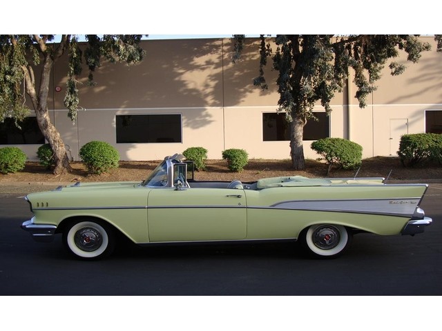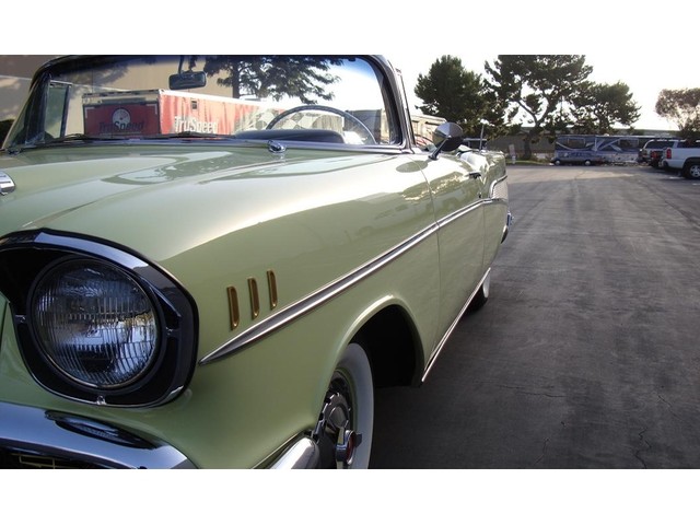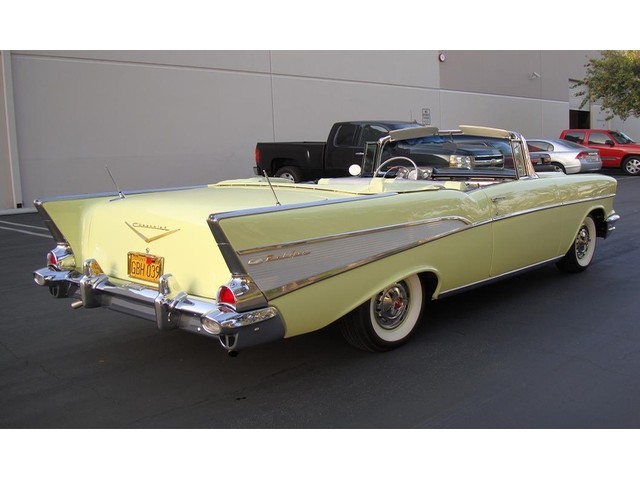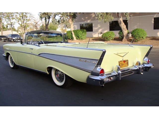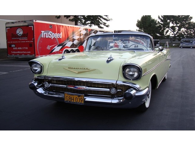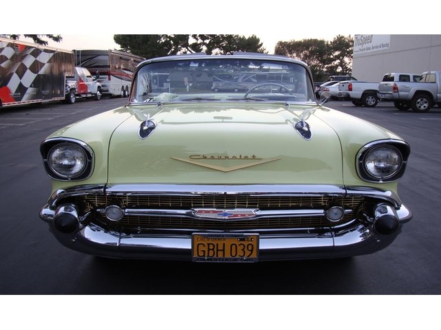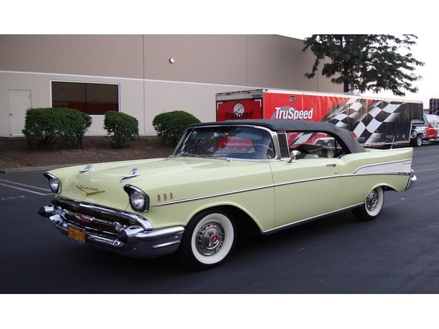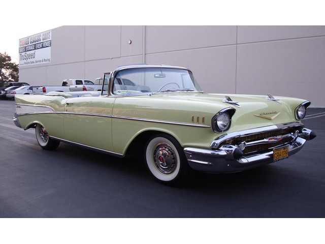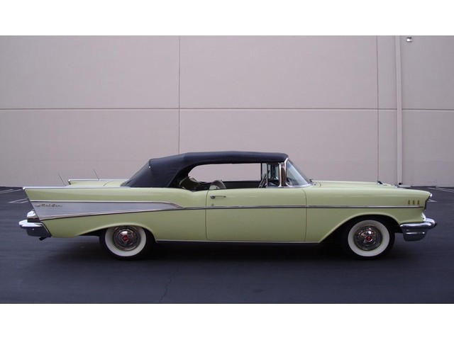 Crevier Classic Cars is pleased to offer from our private collection our 1957 Chevrolet Bel Air Convertible. We started off on our search early in 2007 for the finest restored 1957 Bel Air Convertible we could find for our collection. We knew immediately upon viewing this Bel Air that we needed to add it to our collection. It was the recipient of a frame off, nut and bolt, rotisserie restoration, and completed late in 2006, by noted tri-five restoration experts. It was invited to attend the 2007 Chevy/Vette Fest Nationals and to be showcased in the 50 Year Anniversary '57 Heaven display. It was stringently judged and received a Gold Spinner Award and a score of 993 out of 1000. It is finished in its original color of Colonial Cream with a yellow, black, and silver interior, and a black top. It is equipped with the Power Pack, 283cid V8, 4bb carb, dual exhaust, three speed manual with factory over-drive, posi-traction rear end, ultra rare California Heater, dual antennas, power steering, power brakes, power top, and is a numbers matching vehicle. We have been very selective of where we have shown the car, and done so on a very limited basis, always winning our class with the car. It has just 489 miles since restoration, and as '57 Bel Air Convertibles are true American icons, this one stands above the rest for its quality. Please contact us at 714-426-0238 or mark@crevierclassiccars.com with any questions.