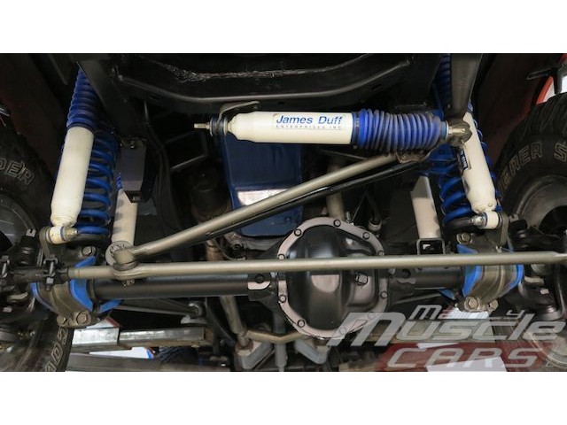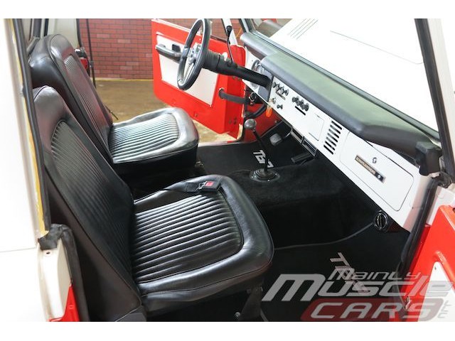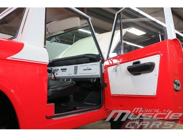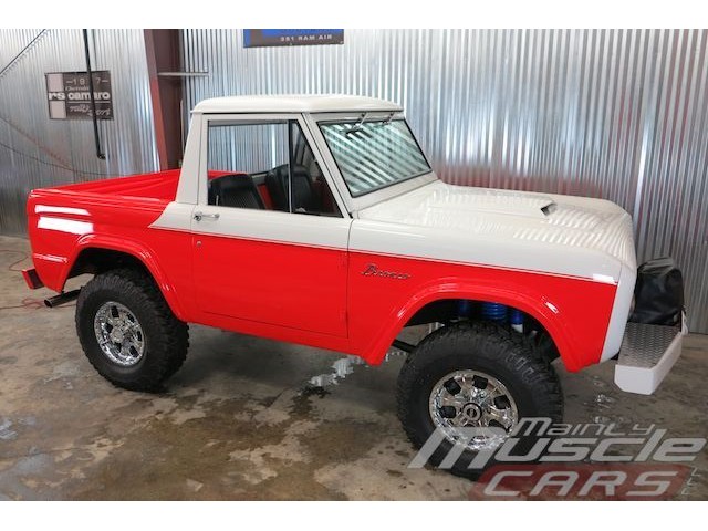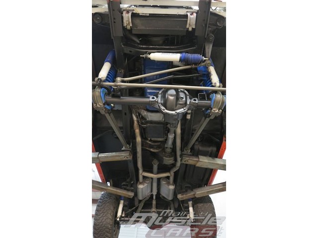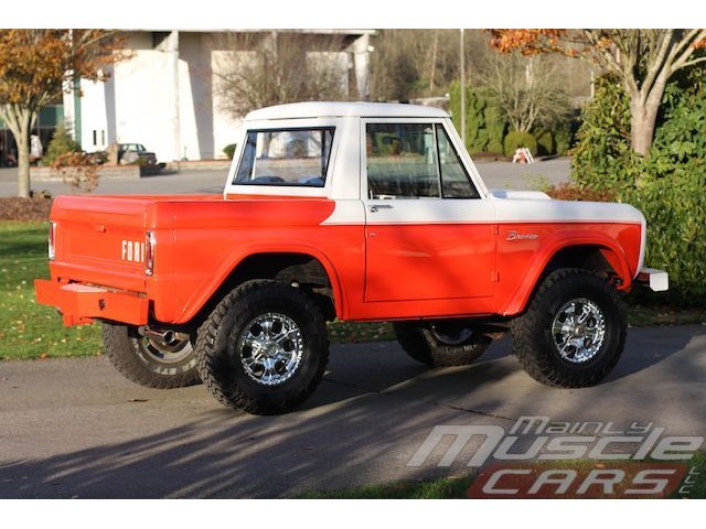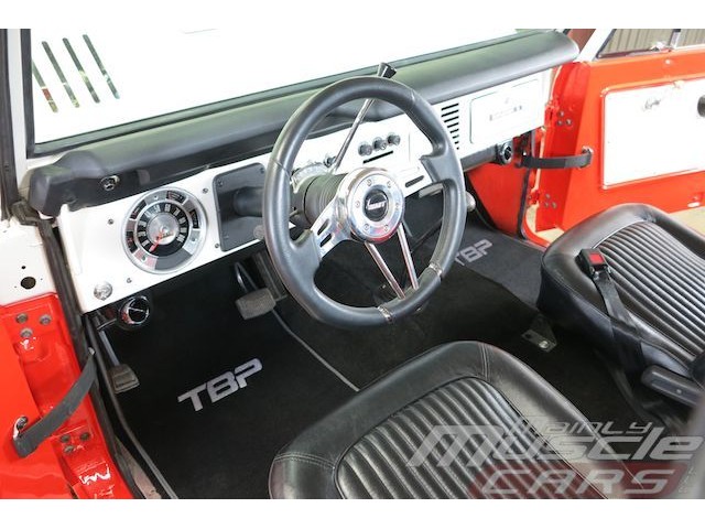 To start off with the body on this Bronco is in excellent condition. Painted in Calypso Coral and Wimbledon White, this one is a true stand out. The more you see it, the more you like it. Perhaps the most obvious is the 'Half-Cab'. Take a closer look and this in not your ordinary cab. It is actually a modified full top cut down to a half cab. It now has a full size rear window that slopes down as well as contoured opening around the door post. The narrow door posts that so often crack out in Broncos have been widened giving them a better look and better sealing as well. The metal work alone would have cost thousands to do this. Take a look at the photos and the videos, this is a very nice touch. Add ons like the Cougar Eliminator Hood Scoop are both functional giving the engine the nice cold air it deserves as well as a great look. The heavy duty bumpers were fabricated as well. The front houses a Warn Winch should you ever need it. Out back the rear bumper integrates a nice step as well as a functional trailer hitch. These were fabricated for this Bronco and look great. For the build a nice body was selected then stripped to bare metal. The panels are nice and straight and the paint finish is nice as well. While not perfect by show car standards it is easily in the 99% of Broncos. The door jambs, under hood and interior were also stripped and painted as well. The tub was fully lined with Bedliner and painted body color. There is quite a lot to this one.