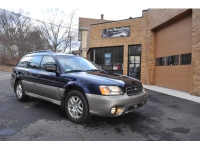 Up for sale we have this Very nice and clean 2004 Subaru Legacy Outback This clean carfax vehicle has cloth seats and cold weather package The 2.5 liter 4 cylinder boxer motor starts right up with ease with no issues 5 Speed Manuel transmission shifts throughout all the gears very smoothly I have personally driven this vehicle and experienced no issues at all; it truly a well serviced and well taken care of! The exterior condition is very nice but do expect some wear due to year and mileage. All four wheels have brand new tires. The suspension is smooth and the vehicle drives very nice. There are no signs of rot anywhere on this body. The interior is in great shape as well; there are no tears rips or stains on seats or even wear on the side bolsters! The A/C blows ice cold and the heat is hot. This vehicle is new owner ready and has been safety inspected and road tested to ensure the safety for years to come. this vehicle has been CT emissions tested as well! If you have any questions regarding this vehicle please don't hesitate to call us at (860) 618-5750. if you call after business hours you can reach A.C. at (860) 479-CTEK (2835) thank you!