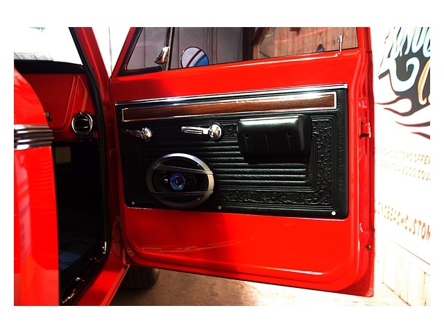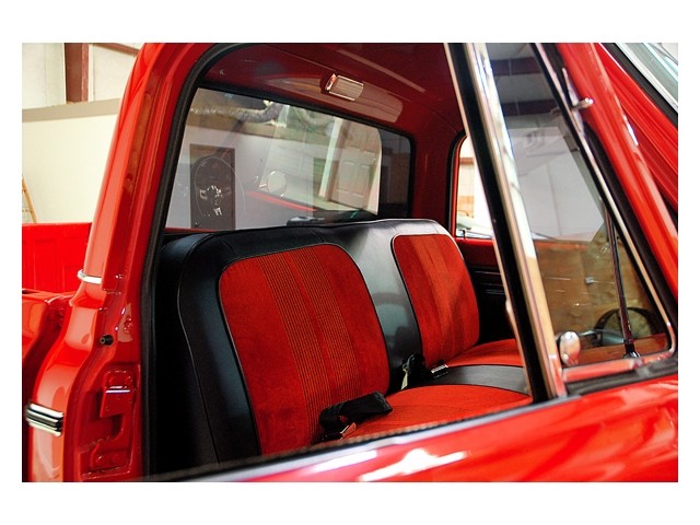 The truck you are viewing now has been restored to a high level. The red paint is slick and shows well over all original sheet metal. This being a southern trucks all it's life this truck has never had any body rust. All the chrome molding are original and in very good shape. Both the front and back bumpers are chrome and in very nice condition. The interior of this truck is done in black vinyl and red cloth and shows very well in this truck. The entire interior options work as they should and the new A / C unit cools the truck nicely.