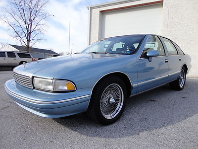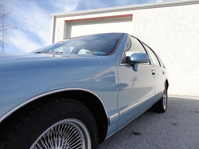 If you've found our listing that means you're a Caprice fan-- so why would you look at any others?  This one is without a doubt the cleanest and fairest priced Caprice Classic listed online.  The crisp 18" Player true wire wheels give just the right amount of attitude and the fresh paint shines like new.  It's hard to spend $4,000 and buy a car that makes a statement.  Here's your chance!  As mentioned before the paint and body work on this car is exceptional; the Light Sapphire Blue Metallic exterior shines like the day it rolled off the showroom floor.  There are virtually no scratches and dings visible, the only defect being some common rust behind the rear wheels (see photos).  The interior is extra clean, especially considering the age and mileage of this vehicle.  Interior options include power windows, locks, and mirrors, original AM/FM/cassette radio, and air conditioning.  You will find this Chevy is also in great mechanical condition, having just recently passed PA inspection and emissions tests.  It starts right up and runs and drives great.  Drive this creampuff home anywhere!  Call us today and treat yourself to a fairly priced car you can be proud of.  If you have any questions about this or any of my other auctions please feel free to contact me via eBay message or you can call me at (610) 436-4646. Thank you for your interest and I look forward to hearing from you.