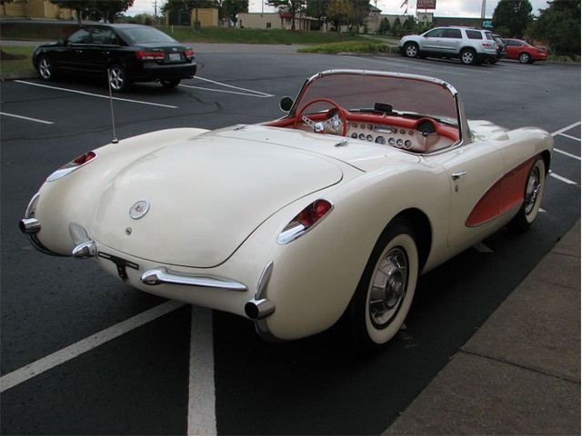 LAST OWNER STATED THIS CAR HAD AN OFF- FRAME RESTORATION 10 YEARS AGO WITH A LITTLE OVER 500 MILES SINCE FINISHED 350(NOM) ENGINE 4-SPEED MANUAL TRANSMISSION SHINY POLO WHITE PAINT WITH VENETIAN RED COVE CORRECT WAFFLE PATTERN RED INTERIOR VERY NICE SEATS, DASH RAIL, DOOR PANELS AND CARPET ORIGINAL WORKING GAUGES, LOOK RESTORED ORIGINAL WORKING AM WONDERBAR RADIO, LOOKS RESTORED BETTER THAN AVERAGE CHROME ON FRONT AND REAR BUMPERS VERY NICE TAN SOFT TOP AND FRAME CORRECT HUBCAPS OLDER WIDE WHITE WALL DUNLAP BIAS PLY TIRES DETAILED ENGINE COMPARTMENT NICE AIR CLEANER AND TOP IGNITION SHIELDING FRONT SUSPENSION LOOKS RESTORED SOLID FRAME, NO RUST PROBLEMS CLEAN TRUNK AREA WITH RUBBER MAT AND WOOD TIRE BOARD STK # 1957 WHMI. DUE TO THE AGE OF THIS VEHICLE IT IS BEING SOLD AS-IS. NO WARRANTY. BID WITH CONFIDENCE CHECK OUT OUR FEEDBACK WE RESERVE THE RIGHT TO CLOSE THIS AUCTION EARLY FOR MORE INFORMATION CALL TOM OR DON AT 615-584-4558 OR 615-584-0023 FOR MORE PHOTOS AND A VIDEO GO TO www.vintagevettes.net