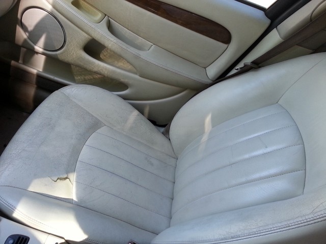 Pacific blue Jaguar 4 door xytpe w/ ivory  interior. Drives great, looks great. Body has normal scratches and dents -nothing major. Interior is clean. Leather is cracking on the seats as shown in the pics. Put seat covers over and interior is fantastic! Left rear taillight lense is cracked. no known defects seen on test drive. This vehicle has a smooth shifting transmission.Tire wear aprox. 40% Call if you have any questions or want to see more pics. I am happy to help out. This car  has a low reserve priced to sell. We have no dealer fees.