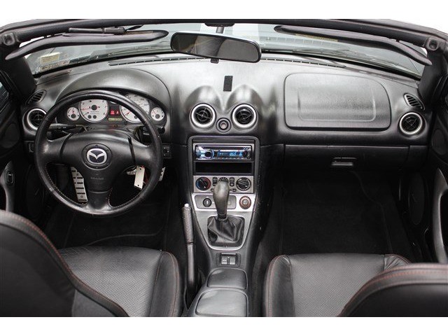 If you want an amazing deal on an amazing convertible that will not break your pocket book, then take a look at this fuel-efficient 2004 Mazda Miata. J.D. Power and Associates gave the 2004 Miata 4.5 out of 5 Power Circles for Overall Initial Quality Design. It is nicely equipped with features such as 2D Convertible, 1.8L 4-Cylinder DOHC 16V, 6-Speed Manual with Overdrive, Blue, Black w/Leather Seat Trim, Alloy wheels, Leather Seat Trim, 4-Wheel Disc Brakes, Air Conditioning, AM/FM radio, Bumpers: body-color, CD player, Convertible roof lining, Convertible roof wind blocker, Driver door bin, Driver vanity mirror, Dual front impact airbags, Four wheel independent suspension, Front anti-roll bar, Front Bucket Seats, Front Center Armrest, Front fog lights, Glass rear window, Leather steering wheel, Passenger cancellable airbag, Passenger door bin, Passenger vanity mirror, Power door mirrors, Power steering, Power windows, Rear anti-roll bar, Rear window defroster, Reclining Front Bucket Seats, Speed-sensing steering, Sport steering wheel, and Tachometer. This superb Mazda Miata is just waiting to bring the right owner lots of joy and happiness with years of trouble-free use.