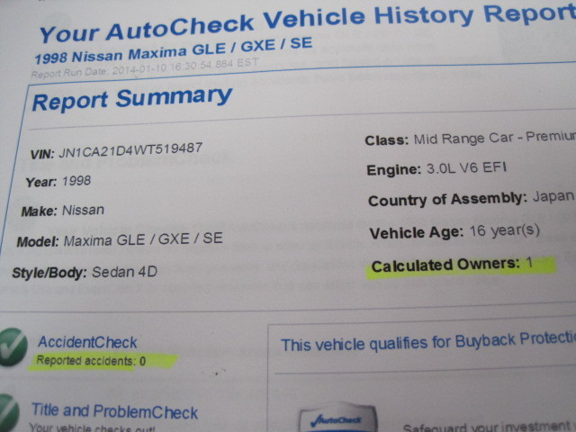 auto check report. 1 owner, no accidents.
