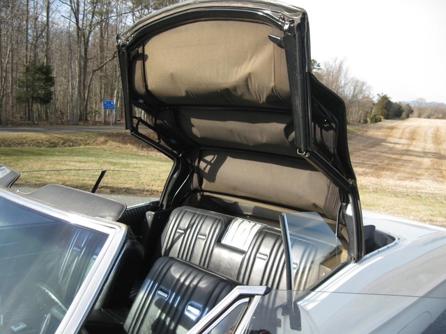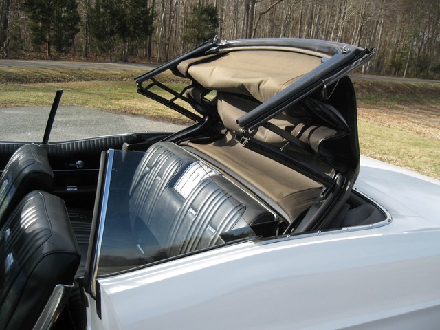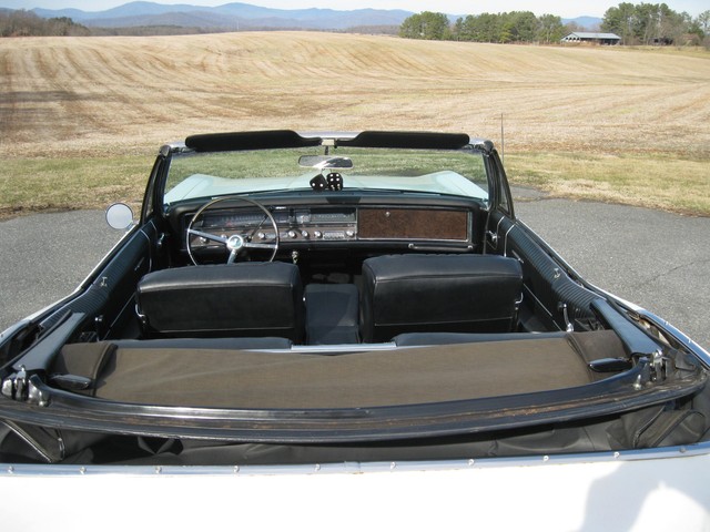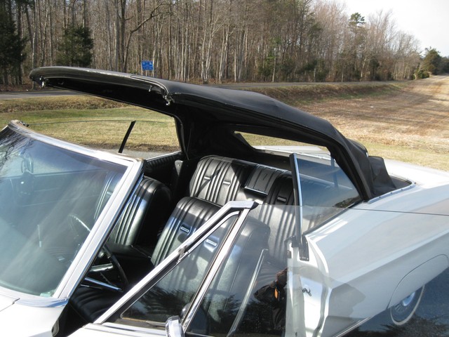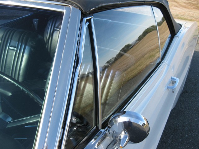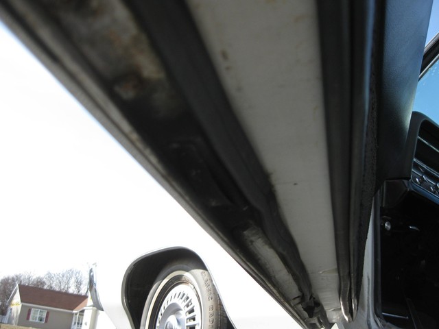 In looking the car over, I see no visible rust and all of the usual problem areas on these cars appear solid & sound (trunk floor, body mounts, etc.). The chrome & stainless trim all shines brightly and has a nice luster, the glass is all good and all the windows & doors work properly. All interior & exterior lights & blinkers work and all the gauges work except the fuel gauge & clock. The radio plays, the horn honks & the heater blows nice & hot. The power top also works as it should.