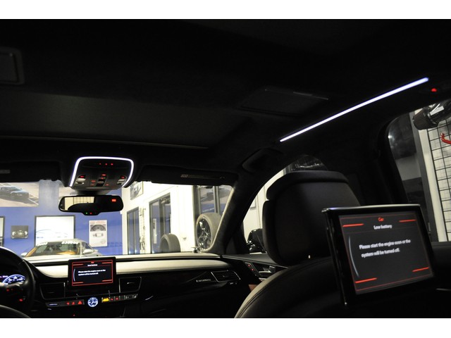 The interior displays a hide away screen for Audi's MMI (Multi Media Inteface) coupled with a Bang & Olufsen surround system, keyless start button, and driver and passenger heated 16-way adjustable bucket seats with massagers built in. Both front and rear seats have personal sun-roofs and the rear seats have two DVD screens to watch your favorite movie on.