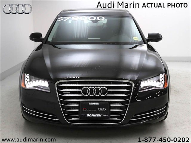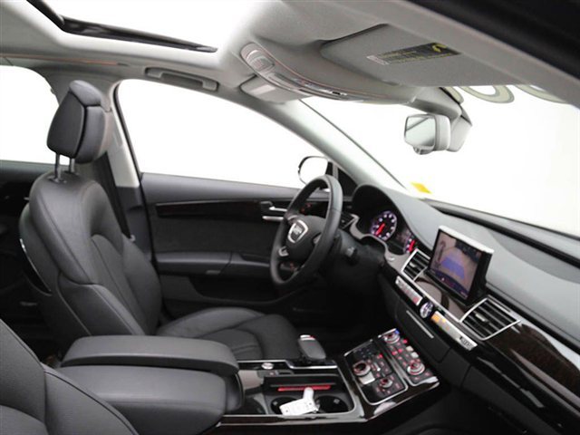 This 2013 Audi A8 L 4dr 4dr Sdn 3.0L AWD Sedan features a 3.0L SUPERCHARGED V6 Gasoline engine. It is equipped with a 8 Speed Automatic transmission. The vehicle is Havanna Black Metallic with a Black Leather interior. It is offered with the remaining factory warranty. - Previuos Service Loaner Driven Locally Loaded Super Clean - Air Conditioning, Climate Control, Dual Zone Climate Control, Cruise Control, Power Steering, Power Windows, Power Door Locks, Power Mirrors, Leather Steering Wheel, Leather Shifter, Power Drivers Seat, Power Passenger Seat, Memory Seat Position, Heated Seat, Wood Trim, Clock, Tachometer, Digital Info Center, Tilt Steering Wheel, Telescoping Steering Wheel, Steering Wheel Radio Controls, Sunroof, Moonroof, Driver Airbag, Passenger Airbag, Side Airbags, Keyless Entry, Security System, ABS Brakes, Traction Control, Dynamic Stability, Rear Defogger, Fog Lights, Intermittent Wipers, AM-FM, CD Changer, Anti-Theft, Leather Interior Surface, Comfort Pkg, LED Headlight, 6CD-DVD Changer, Assam Gray Vavona Wood Inlays, 20 Wheels, Reverse Camera, Premium Sound, Aux. Audio Input, Heated Mirrors, Navigation System -