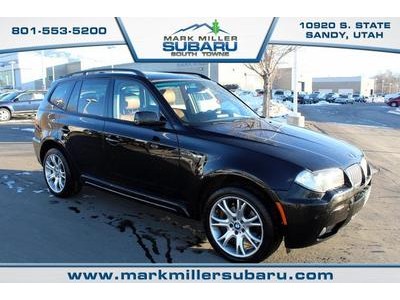 **ALL WHEEL DRIVE**, **BLUETOOTH**, **CLEAN CARFAX HISTORY**, **GREAT CONDITION**, **HEATED SEATS**, **LEATHER**, **NAVIGATION**, and **POWER SEAT**. Be the talk of the town when you roll down the street in this gorgeous 2007 BMW X3. This roomy X3, with its grippy AWD, will handle anything mother nature decides to throw at you during one of her bad days at work. It scored the top rating in the IIHS frontal offset test. This SUV is nicely equipped with features such as 4-Wheel Disc Brakes, 8 Speakers, ABS brakes, Air Conditioning, Alloy wheels, AM/FM radio, Anti-Theft AM/FM Stereo/CD/MP3 Audio System, Automatic temperature control, Brake assist, Bumpers: body-color, CD player, Delay-off headlights, Driver door bin, Driver vanity mirror, Dual front impact airbags, Dual front side impact airbags, Electronic Stability Control, Four wheel independent suspension, Front anti-roll bar, Front Bucket Seats, Front Center Armrest w/Storage, Front fog lights, Front reading lights, Fully automatic headlights, Genuine wood console insert, Genuine wood dashboard insert, Genuine wood door panel insert, Illuminated entry, Leather steering wheel, Low tire pressure warning, Memory seat, MP3 decoder, Occupant sensing airbag, Outside temperature display, Overhead airbag, Passenger door bin, Passenger vanity mirror, Power door mirrors, Power driver seat, Power moonroof, Power passenger seat, Power steering, Power windows, Radio data system, Rain sensing wipers, Rear anti-roll bar, Rear reading lights, Rear seat center armrest, Rear window defroster, Rear window wiper, Remote keyless entry, Roof rack: rails only, Sensatec Leatherette Upholstery, Speed control, Speed-sensing steering, Speed-Sensitive Wipers, Split folding rear seat, Spoiler, Steering wheel mounted A/C controls, Steering wheel mounted audio controls, Tachometer, Telescoping steering wheel, Tilt steering wheel, Traction control, Trip computer, and Variably intermittent wipers.