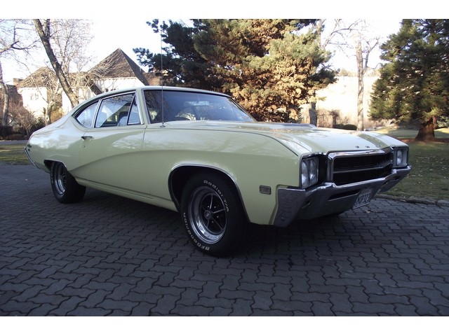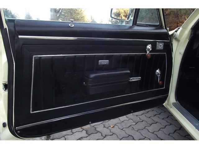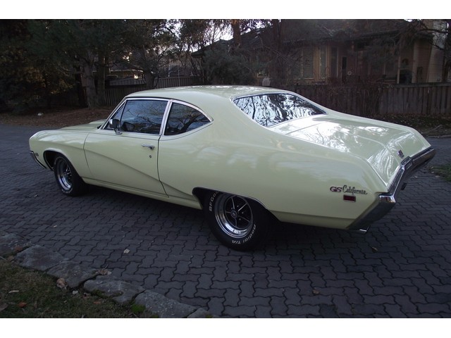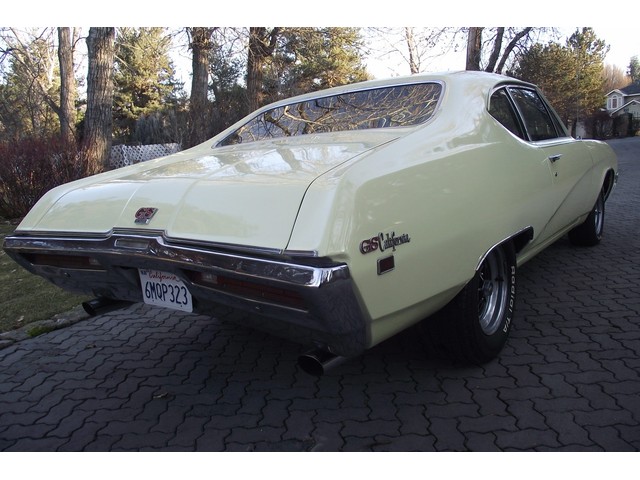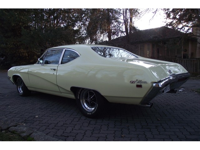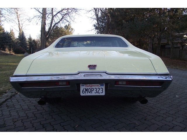 Next let's move on to the exterior and interior. The exterior Yellow paint is Very Nice and it has the Original Grand Sport California badging on the rear quarters!! This car has all of its Original sheet metal. Then painted the Cameo Cream Yellow finish with Base Clear system that was wet sanded and buffed. It is truly a mirror finish, no chips, scratches, dings, I am sure there are a few imperfections that I didn't find, somewhere. The interior is nice with GS Black front bucket seats and Buick GS center console, Nice Original Black vinyl back bench seat, Original black headliner and sun visors, nice original dash and nice original dash pad, nice original Buick steering wheel, nice black carpeting and door panels, with little or no wear. This car is nicely equipped including the Original AM Radio (not working), it has a new Sony digital AM/FM/CD stereo system wit 2 6" Sony Xplod speakers in front and 2 6X9" 3-way speakers in back with a Majestic 160 watt amp with 2 Visonik 12’ Subs, factory gauge package, and aftermarket 3 gauge package, oil pressure, volt and temperature, and driver’s chrome remote exterior mirror. The correct Factory Buick Rally Wheels and Buick centercaps and High performance BF Goodrich Radial T/A tires, really give it that classic muscle car look.