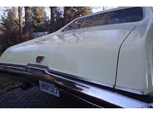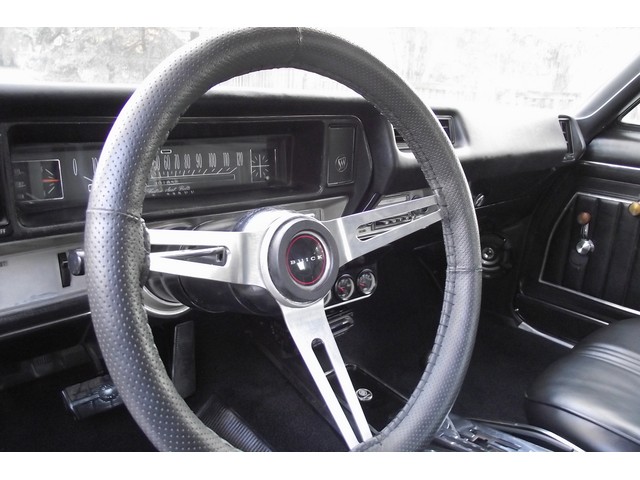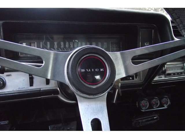 Let's start with the engine which we were told was the VERY STRONG, ORIGINAL, REBUILT, Buick 350 CID V8. It has the Original 4-barrell intake and carb and the Original GS 350 Snorkel Air Cleaner and proper GS hood cold air intake vents and it is running very well. The transmission is a smooth TH350 3-speed automatic transmission, that also was gone through and has a mild shift kit and a Hurst Dual Gate Shifter (sometimes called the "his and hers" shifter) and Buick center console and 12 bolt rear end. Sounds AWESOME too with Headers and custom dual 2" exhaust with dual flowmasters and cross pipe. Nothing sounds better than when you lay the hammer down on GM 350 with the right dual exhaust system, WOW !! It has Power brakes, Power steering, all the steering and suspension components are in great shape or new and a factory heavy duty front Anti-Sway bar. This is an AWESOME driver, it is tight and with the power steering and brakes, it is a joy to drive. It doesn’t wander or pull when you apply the brakes, even on the freeway, it cruises down the freeway at 75 MPH with plenty of pedal left. When you rumble down the road in this car looking over the GS hood, you feel like the KING of the ROAD.