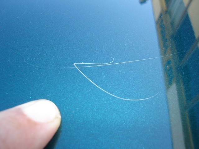 Exterior paint is glossy overall (see photos). However, there are several scratches; I have pointed out the most serious along with a dent on the tailgate (see photos)