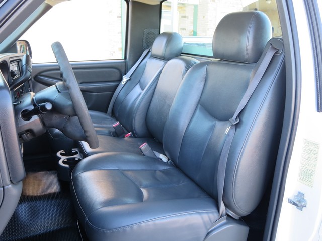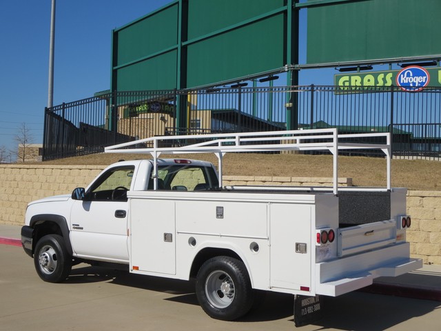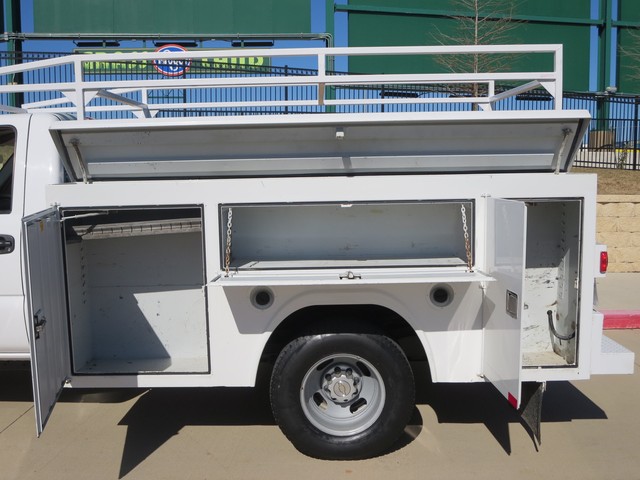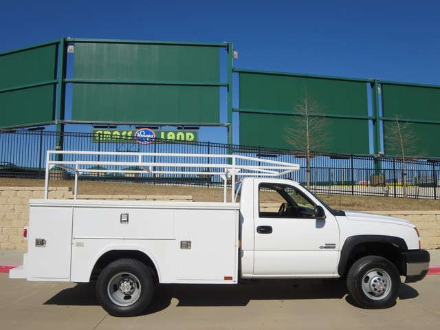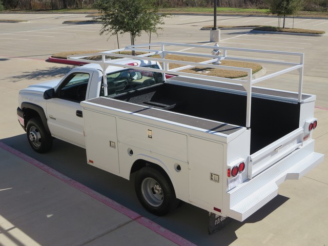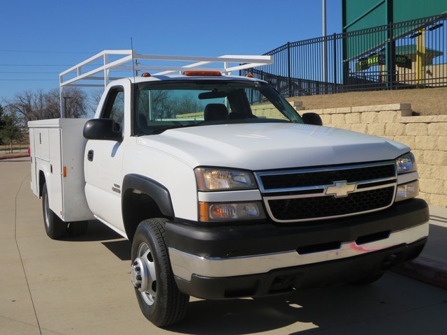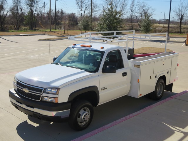 2007 Chevrolet Silverado 3500 UTILITY BED TEXAS OWN ,ONE OWNER  2dr SINGLE Cab DRW (6.6L 8cyl ) with OXFORD WHITE  Exterior, BLACK Interior.  Loaded with 6.6L Turbocharged Diesel V8 DI Engine, Allison Automatic Transmission, LEATHER Seats, Front Split Bench Seat, 3-Passenger AM/FM ,COLD AC AND Clearance Lights,LADDER RACK, 8ft. Long Bed, Bed Liner, 8 TOOL BOX, Dual Rear Wheels, 16 Inch Wheels and more.