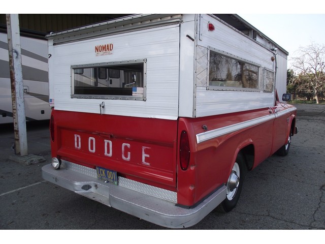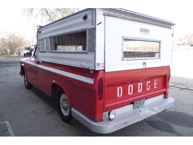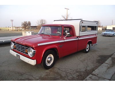 This is one NICE Original 1966 Dodge D100 Long bed pickup and as you can see in the pictures it was well cared for and is BEAUTIFUL!! Careful to not let this 1966 jewel get away! What a value it is at the reserve price which is set very low! We are selling this car for a collector friend of ours that is moving into a new house and it will only fit 20 of his 40+ cars, so he is thinning his herd. (Poor baby, but lucky you) This BEAUTY has only had One owner since it was brand new and only 99,324 ORIGINAL MILES!! This truck was purchased from the original owner. WE DIDNT TOUCH UP ANYTHING ON THIS TRUCK IT IS ALL ORIGINAL. Take a look at the lines on this beauty, what an amazing looking truck. This BEAUTY is one nice driving rig and is sound and in very nice shape. It is a DRY - SOLID – Oregon truck all its life. This Original 1966 Dodge D100 Long bed pickup has the original STRONG – 318 CID 200HP V8 motor in it and it is running very well. It has the stock style exhaust system and runs like a sewing machine, you can barely tell it is running.  The engine is backed by a smooth four speed manual transmission which also functions very well and original rear differential. The Original Red and white  interior is VERY NICE and has the Original Black and white bench seat you can see the bottom seat cushion needs repair, NICE ORIGINAL painted dash, NICE ORIGINAL gauge cluster with correct “tooled” surround in great shape, NICE ORIGINAL sun visors, NICE ORIGINAL door panels and a NICE ORIGINAL deluxe Mopar steering wheel and horn ring. The truck still retains the factory AM radio and it is working great. This truck is nicely equipped including factory heavy duty brakes, factory gauge package, factory AM  Radio (working), factory fuel tank, original dual Camper Special exterior mirrors, good heater and defroster and seat belts and Nomad camper shell that was put on right after it was purchased new and even made right in Cornelius, OR. This truck is a great running and wonderful looking Pickup. This Original 1966 Dodge D100 Long bed pickup has sharp looks and plenty of power as well! This truck has a great ride, it is smooth and quiet and really rides as nice as any new truck!! I was amazed at what a joy it was to drive this truck. I drove this truck around for a couple of days  back and forth and running errands and on the freeway and it doesn’t pull or wonder even when applying the brakes. These vehicles have an appreciative group of owners, any of which would be pleased to own this one. The suspension and drive line seem to be in good working order as well as the electrical system.