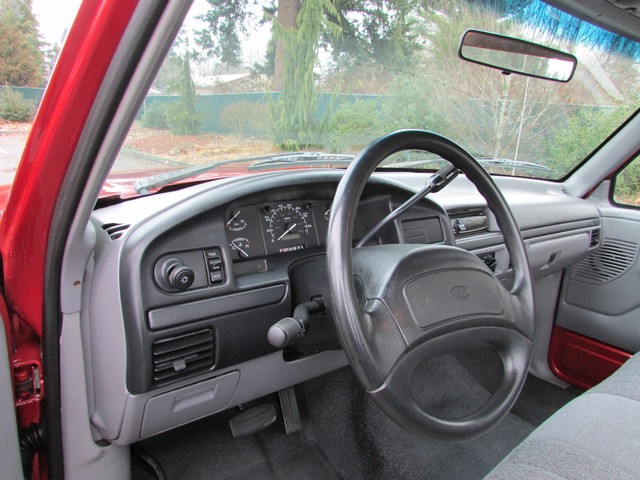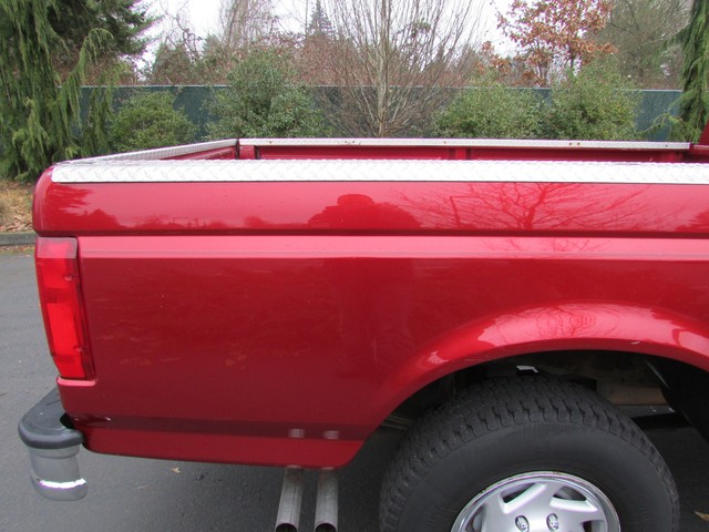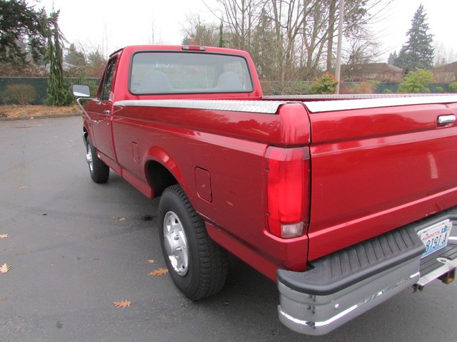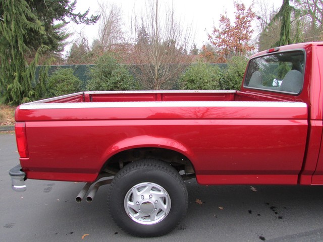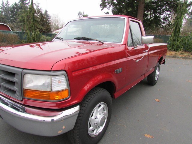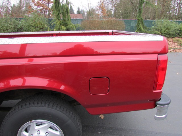 THIS TRUCK WAS PURCHASED NEW IN OREGEON THEN MOVED HERE TO WA STATE AND HAS ALWAYS REMAINED IN THIS STATE SINCE AND AS YOU CAN TELL IT HAS BEEN EXTREMELY WELL CARED FOR AND LOOKED AFTER. WE USE NO SALT ON THE ROADS AND RARELY GET SNOW ON THIS SIDE OF THE MOUNTAINS SO THIS F250 HS IS 100% ROCK SOLID AND RUST FREE. IT HAS JUST OVER 185K  ACTUAL MILES WITH CLEAN ACCIDENT FREE HISTORY AND CLEAR WA TITLE. THIS F250 HAS HAD ONLY TWO OWNERS THAT BABIED IT, AND IT WAS RECENTLY TRADED IN ON A NEW F-SERIES SO I HAVE PERSONALLY PUT A FEW HUNDRED MILES ON IT.  EVEN THE UNDER CARRIAGE IS IN NICE CLEAN AND DRY CONDITION WITH ALL ORIGINAL DEALER ASSEMBLY MARKINGS AND DECALS IN AMAZINGLY CLEAN AND INTACT CONDITION ON THE MOTOR, REAREND, FRONT SUSPENSION AND ALONG ENGINE BAY. THE PAINT ALONG FIREWALL , UNDER HOOD, ALONG DOOR JAMBS AND ON INNER PART OF DOORS LOOKS LIKE NEW AND HAS THE SAME BRIGHTS AND GLOSSY PAINT AS THE EXTERIOR WITH NO WEAR. THIS HAS GOT TO BE ONE OF THE NICEST 97 F250'S AROUND!