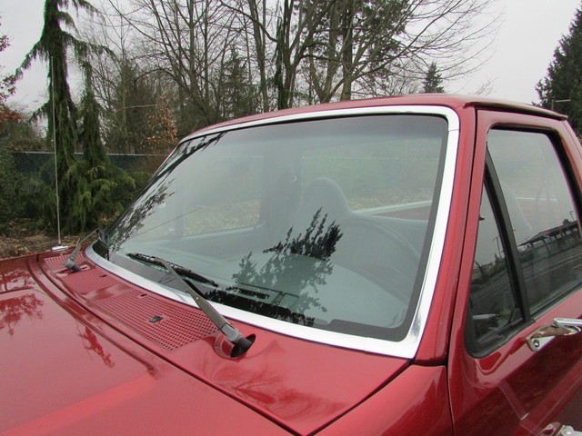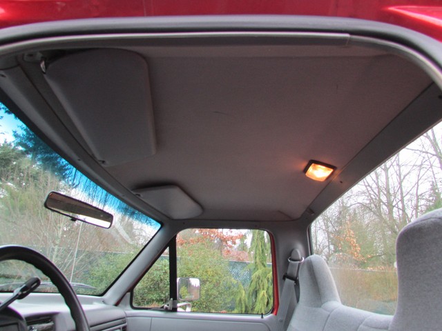 . SPECIAL OPTIONED XL TRIM WITH UPGRADED CLOTH SEATS OVER THE VINYL AND CLOTH HEADLINER OVER THE BASE EXPOSED PAINTED METAL. THE DOORS SHUT LIKE A VAULT WITH NO DOOR SAG AND THE PAINT ALONG THE BOTTOM, SIDES AND INNER FACE OF DOORS IS IN AMAZING CONDITION THAT YOU COULD EAT OFF OF AND CARRIES ALONG THE ROCKERS AND DOOR JAMB AREA. NICE SOUNDING UPGRADED CD STEREO, CRYSTAL CLEAR PROPER WORKING GAUGES AND NO SUN DAMAGE ON ANY PANELS OR TRIM PIECES. THE ONLY WEAR AND FAULTS ARE TWO MINOR SMALL HAIRLINE CRACKS ON VINYL PART OF DASH ABOVE GLOVE BOX AND SOME SEAT WEAR ON TOP DRIVER ENTRY EDGE. OTHERWISE THIS INTERIOR IS TRULY IN MINT CONDITION AND AS CLOSE TO PERFECT AS YOU CAN GET!