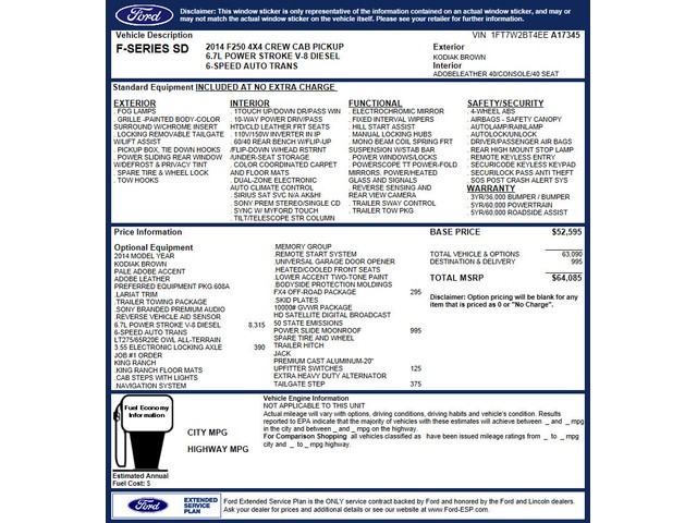 • VIN: 1FT7W2BT4EEA17345