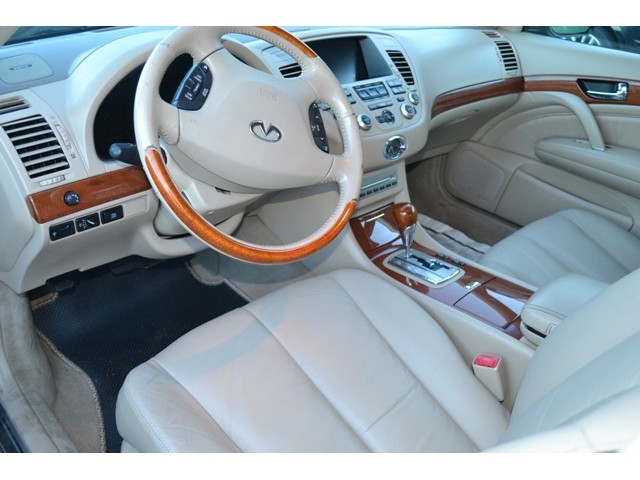 This 2004 INFINITI Q45 4DR LUXUORY SEDAN IS IN VERY NICE COSMETIC AND MECHANICAL CONDITION, . Runs EXTREMELY good and smooth with no unusual squeaks or rattles. This vehicle is very responsive with no unusual noise of any type coming from the engine or transmission. Very good high performance tires with the following thread remaining : FR 6/32, FL 6/32, RR  5/32, RL 5/32 and the rims are in very good shape, . No door dings or major scratches observed. ICE COLD AIR. EVERYTHING WORKS AS NEW. The vehicle brakes straight with no pulsation or pulling. There is no smoke odor and stills smells new. The interior is immaculate and shows very minor, normal wear on carpet and factory mats. The LEATHER SEATS is VERY GOOD COSMETIC CONDITION ALMOST NO SIGNS OF WEAR.
