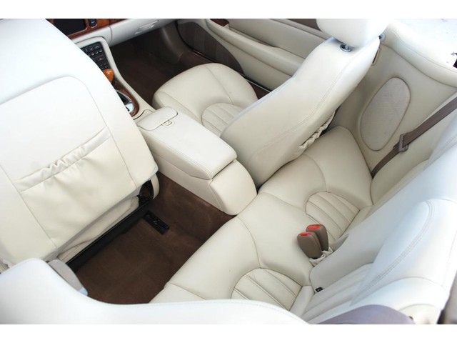 No one does the classic leather-and-burled-wood luxury interiors like the British. And the XK8's interior is a fine contemporary interpretation of that tradition, with all of the visual and tactile cues of classic English luxury. It's highlighted by a full-width book-matched burled walnut veneer on the instrument panel, more of the same around the "J-gate" shifter in the console and the window lifts on the doors, and sumptuous hand-cut, hand-stitched leather on the power-adjustable front seats. It's comfortable and seriously upper-crust. The power-operated top needs no hand latching or unlatching, and goes up or down quickly. Visibility with the top is average for a two-seat convertible, a polite way of saying "you've got side mirrors, use them." But the heated glass backlight makes the best of visibility, and it's wonderfully clear, with just the right amount of wind in the hair, with the top down. There is a rear seat, but unless all passengers are under five foot two, it's best thought of as a padded parcel shelf. The trunk is huge for a two-seat sports car. All the better for the XK8's true mission in life - fast touring in a grand manner.