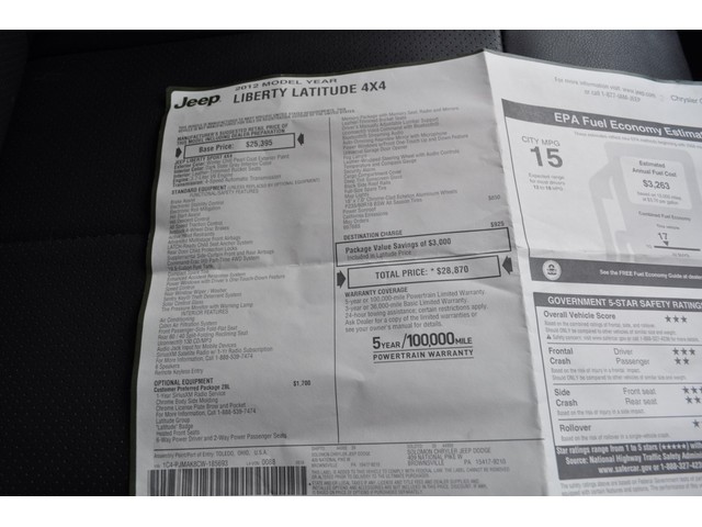 For sale is 4x4 2012 Jeep Liberty Latitude Edition with only 14k miles on it. The rare Winter Chill Pearl Paint is in excellent condition. The black leather interior is in excellent condition as well and has never been smoked in. This liberty is loaded with options such as: