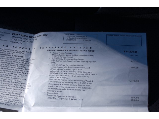 Lexus GX 460 Sport Utility DVD NAVIGATION 6 Speed Semi-Automatic Gray 44762 8-Cylinder V8, 4.6L2010 SUV New Milford Motors 860-799-8335