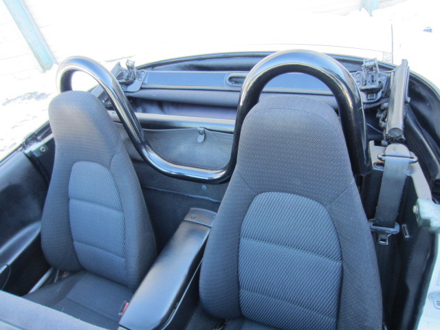 The body is in great shape. The white color really sets this car apart and makes it look extra nice. Car is equipped with alloy wheels. Additional features include power antenna and black convertible top. The top is in excellent condition with no rips or tears. The only issue with the exterior is some minor scuffs on the rear bumper. Otherwise, the car looks solid from the outside. You have to see it to appreciate it!!!