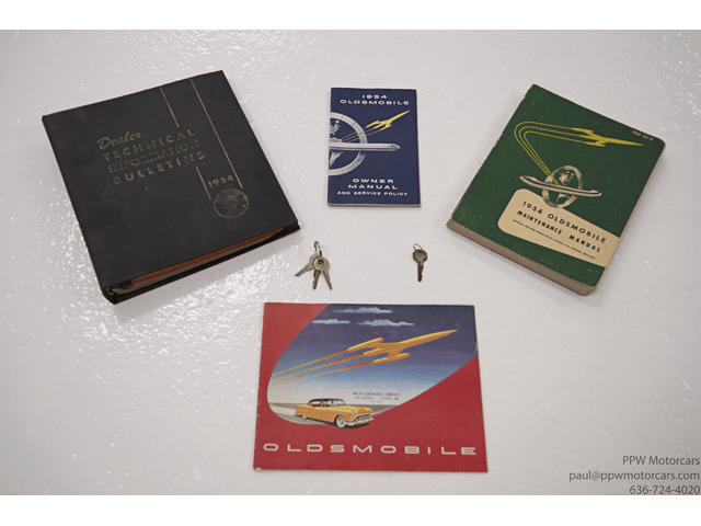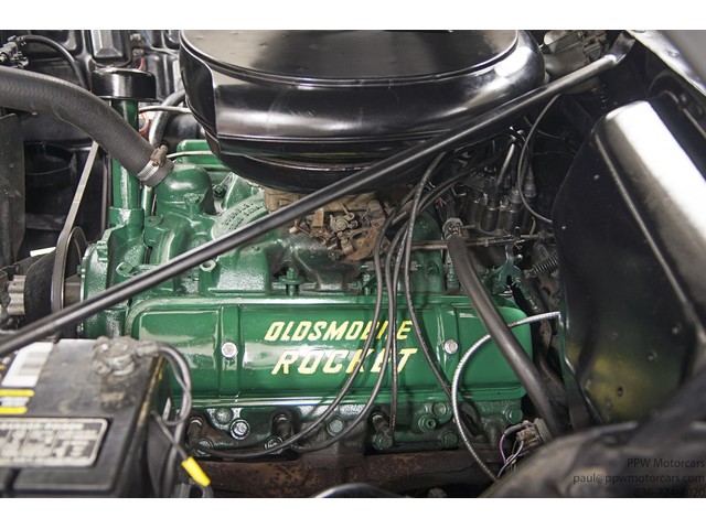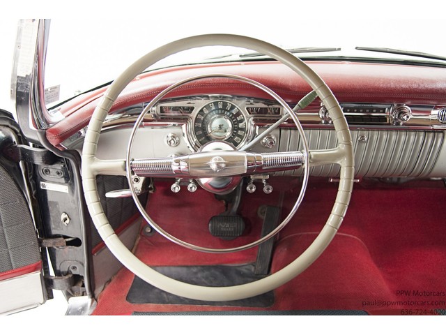 PPW Motorcars is pleased to present this low mile and highly original 1954 Oldsmobile Deluxe Holiday Coupe, which was beautifully ordered in Black with a Polar White Roof over a Red Leather/Gray Fabric Interior. Very few cars were originally black, fewer with a white top and still fewer yet with a red interior. This car is surely one of a few ever produced in this combonation! With just two reported owners, 40,544 original miles and an original interior this magnificent piece of American history is a very rare find indeed. The interior, is impeccable and near all original, right down to the carpet. The chrome, stainless steel and paint are electrifying and ready to be shown! Further, the car has just been serviced with an oil change, spark plugs and overall tune up to ensure that this magnificent motorcar drives as well as it looks and with the power of the legendary “Rocket” V8 upheld by the 4 speed Hydramatic transmission, this car is an absolute pleasure to drive! Bid with confidence-this is truly one of the nicest and most original examples of this great classic to be found anywhere!