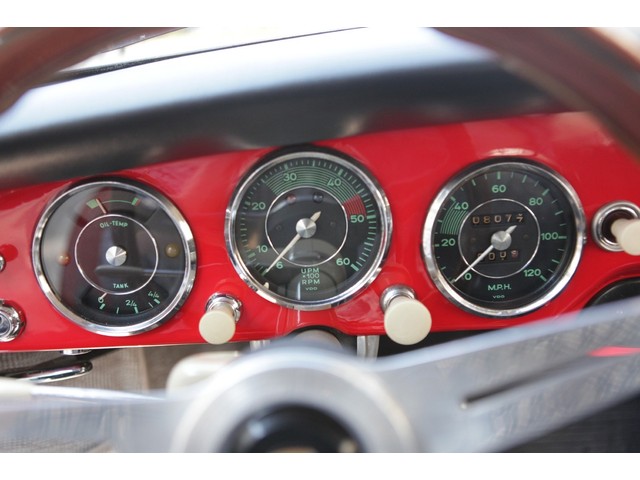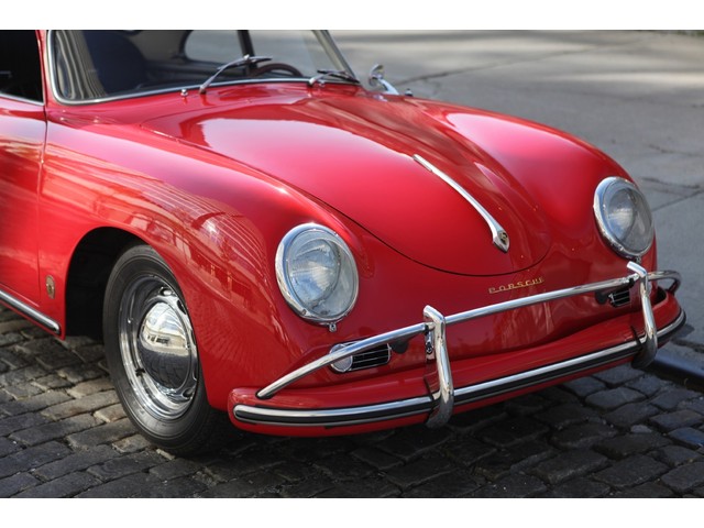 1959 Porsche 356A Coupe*Matching Numbers* Fully Restored* Certificate of Authenticity* This 1959 Porsche 356A Coupe is presented in the classic Porsche colors of Red over a Black interior. The car wears a beautiful restoration that included new paint, rebuilt engine, new autos international interior, and upgraded Koni shocks. The car also sports USA spec bumpers, which were originally fitted to the car as per the Certificate of Authenticity. This car spent a lot of its life out west in the dry climates of California, Colorado and Arizona. The undercarriage has been detailed and has no rust at all. The car is mechanically excellent and is one of the tightest, best driving A coupes we have had. It is a matching numbers car and comes with a Porsche Certificate of Authenticity, jack, and spare.