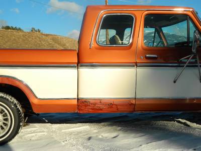 I have for sale a 1977 Ford F-150, super cab, short box, 2 wheel drive pickup.  It has a 400 c.i. engine and an automatic transmission.  It is the Ranger XLT package.  The odometer shows 74,986 miles.  I am unsure if it is original miles or not.  I have a clear title for the truck.