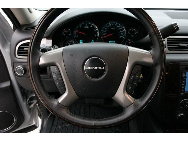 Super clean 2011 Yukon Denali! We took this in on trade from a local client who was the original owner. Looking at the Free Carfax, you will see that all oil changes were done routinely and that this Denali was never involved in an accident. This Denali has RWD  and a 6.2L V8 with Flex Fuel E85 capabilities to help you save at the pump. The Pure Silver Metallic paint is in excellent condition as is the Ebony Ultrasoft Leather interior. Some highlights of this Denali include a Power Tilt-Sliding Sunroof with Express Open-Close, Autoride Air Suspension Package, DVD based Navigation system with XM NavTraffic, Backup Camera, Heated 1st and 2nd row seats, Bluetooth, DVD Entertainment, Woodgrain highlights, 3 rows of seating with captains chairs in the 2nd row, Dual Zone climate control, and so much more. Call Dustin Schluterman today at 469-471-1188 for further details on condition and options as well as to set up a Buy it now!