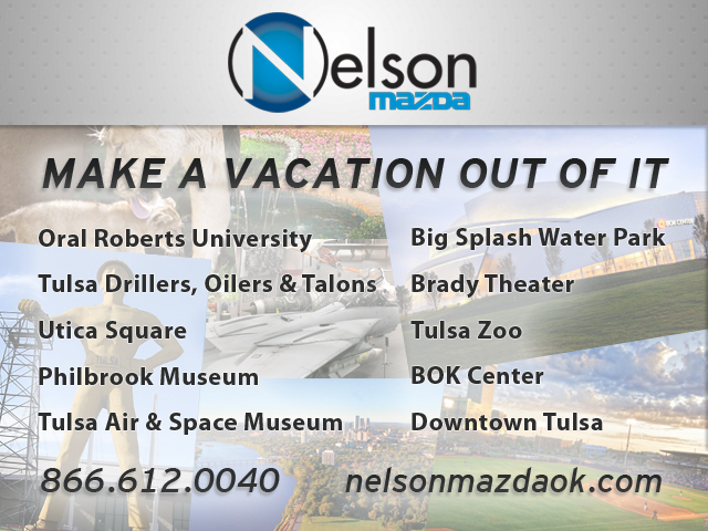 Nelson Mazda is based in Tulsa, Oklahoma.  We opened our doors in 2005 after dividing the original Nelson Nissan-Mazda in Broken Arrow.  The store's founder, Robert Nelson, established his company on faith in Christ and excellent customer service.  Today the Nelson Auto Group has grown to 4 locations that include dealerships in Oklahoma and Tennessee.  Nelson Mazda, Northeastern Oklahoma's exclusive Mazda dealership is located in beautiful south Tulsa.  Nelson Mazda is called a “Retail Revolution” prototype dealership.  The unique building colors and architecture sets our showroom apart from any other in Tulsa, putting Nelson Mazda at the forefront of every car buyers mind. Our dedicated internet staff is ready to provide you the same great service the Tulsa area has been receiving for more than 50 years from the Nelson family!