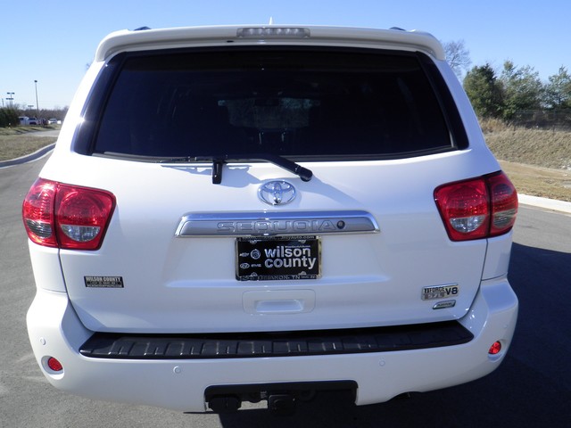 ONE OWNER LOCAL TRADE 2013 TOYOTA SEQUOIA PLATINUM EDITION 4X4, 5.7 IFORCE V-8, WHITE DIAMOND PLATINUM PAINT, PREMIUM 20" WHEELS, RUNNING BOARDS, MUD GUARDS, DEEP TINTED GLASS, POWER MOONROOF, ROOF RACK WITH CROSS RAILS, CLASS III TOWING PACKAGE, REAR SENSING BUMPER, REAR VIEW CAMERA, POWER LIFTGATE, DUAL POWER FOLDING REAR SEATS, 7 PASSENGER SEATING WITH REAR BUCKET SEATS THAT ARE HEATED, REAR DVD ENTERTAINMENT CENTER, REAR AIR/HEAT, ALL WEATHER FLOOR MATS, WITH REAR CARPET MAT, BLIND SPOT MONITOR, PREMIUM SOUND WITH NAVIGATION, USB WITH BLUETOOTH, SAT RADIO, HEATED/COOLED MEMORY AND POWER FRONT SEATING, LOADED UP WITH ALL THE OPTIONS READY TO GO WITH JUST 7,824 MILES, FULLY SERVICED AND BALANCE OF FACTORY WARRANTY. 2 SETS OF KEYS AND OWNERS MANUAL INCLUDED.