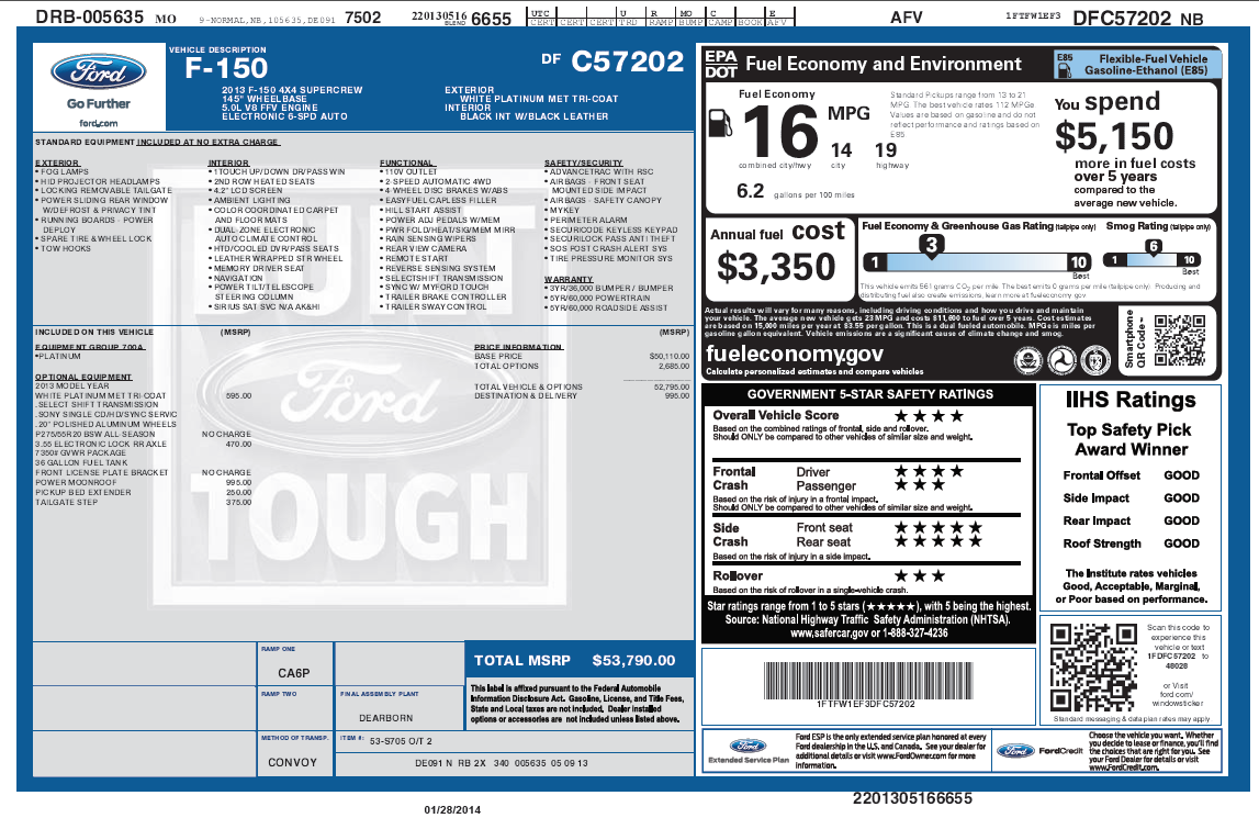 CLEAN AUTOCHECK! ONE OWNER VEHICLE! 2013 White Platinum Ford F-150 Platinum 4X4 Super Crew, 5.0L V8 Engine Zurich Certified Warranty - we perform a thorough inspection on every pre-owned vehicle under 100,000 miles, and back each one with a 6 month/6,000 mile powertrain warranty!