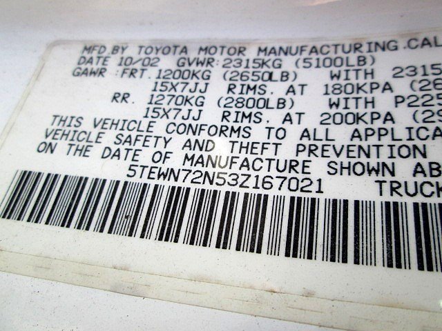 VIN: 5TEWN72N53Z167021 Stock Number: 2147165B Mileage: 148066