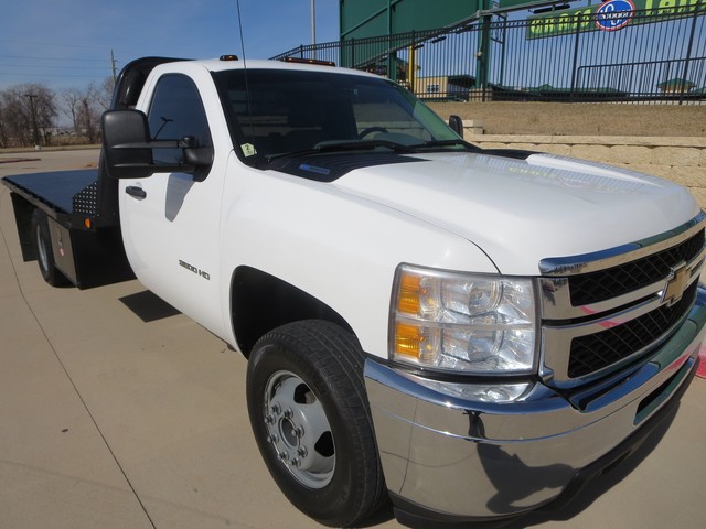 2011 Chevrolet Silverado 3500 Texas Own ,One Owner 2dr Single Cab DRW 2WD (6.6L 8cyl) Turbo Diesel With Diamond Flat Bed and Gooseneck Ready , with Summit White Exterior, Dk. Gray Interior. Loaded with 6.6L Diesel V8 DI Engine, Automatic Transmission, Leather Seats, 3-Passenger Seating, Front Split Bench, Cruise Control, Am/Fm Radio, Power Windows, Power Door Locks, Power Exterior Mirrors With bulit in Signal, Trailer Hitch, 17" Wheels and more.