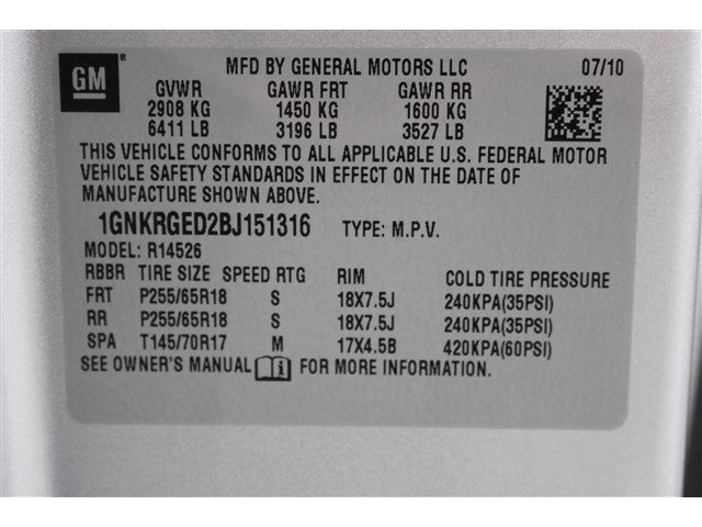 Who could say no to a truly wonderful SUV like this gorgeous 2011 Chevrolet Traverse? It is nicely equipped with features such as Preferred Equipment Group 1LT (8-Way Power Driver Seat w/Power Lumbar, Body-Color Bodyside Moldings, Body-Color Heated Power-Adjustable Outside Mirrors, Enhanced Driver Information Center, Integral Spotter Blind-Zone Mirrors, Leather-Wrapped Steering Wheel, Redundant Audio Controls on Steering Wheel, Single-Zone Manual Front Climate Control, Ultrasonic Rear Parking Assist, and Variable Effort Power Steering), Traverse LT 1LT, 3.6L V6 SIDI, Silver, Alloy wheels, 3rd row seats: split-bench, 4-Wheel Disc Brakes, 6 Speakers, 8-Passenger Seating (2-3-3 Seating Configuration), ABS brakes, Air Conditioning, AM/FM Stereo w/MP3 Compatible CD Player, Bodyside moldings, Brake assist, Bumpers: body-color, Driver door bin, Driver vanity mirror, Dual front impact airbags, Dual front side impact airbags, Electronic Stability Control, Emergency communication system, Four wheel independent suspension, Front Bucket Seats, Front Center Armrest w/Storage, Front reading lights, Fully automatic headlights, Heated door mirrors, Illuminated entry, Low tire pressure warning, Occupant sensing airbag, Overhead airbag, Panic alarm, Passenger vanity mirror, Power door mirrors, Power driver seat, Power windows, Premium Cloth Seat Trim, Rear air conditioning, Rear seat center armrest, Rear window wiper, Reclining Front Bucket Seats, Remote keyless entry, Roof rack: rails only, Security system, Speed control, Speed-sensing steering, Split folding rear seat, Spoiler, Steering wheel mounted audio controls, Telescoping steering wheel, Tilt steering wheel, Traction control, Turn signal indicator mirrors, and XM Radio. This Traverse would be so much happier out helping you save money on gas instead of sitting here unappreciated on our lot. It's ready, come and get it! Designated by Consumer Guide as a 2011 Midsize SUV Best Buy.