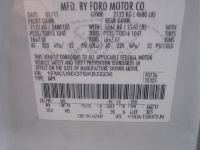 VIN: 1FMCU9DG7BKB32236   Interior Color: Gray