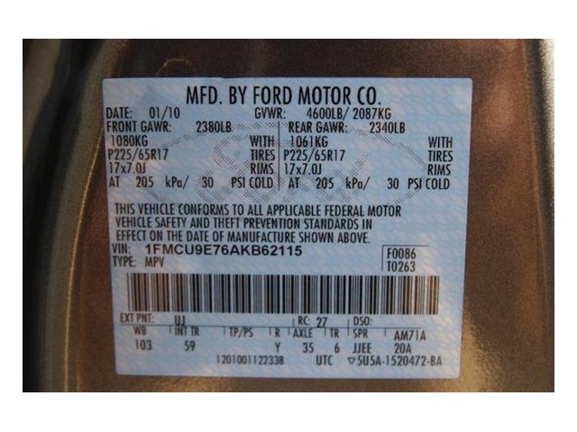 The 2010 Escape is praised for its modern, well-designed interior, offering ample legroom in both the front and back row. Maximum cargo capacity with the rear seats folded is 67.2 cubic feet, which is fairly good for the class.