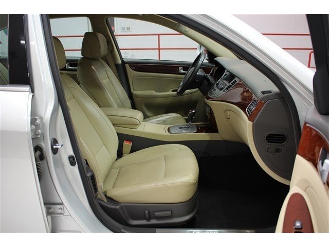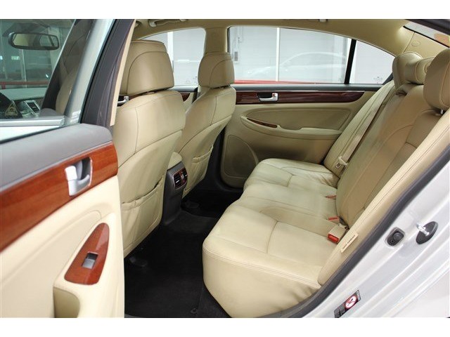 Who could say no to a simply great car like this stunning-looking 2012 Hyundai Genesis? It is nicely equipped with features such as 8-Speed Automatic with SHIFTRONIC, Platinum Metallic, Jet Black w/Leather Seating Surfaces or Ultra-Premium Leather Seating Surfaces, 17 x 7.0J 10-Spoke Aluminum Alloy Wheels, 7 Speakers, ABS brakes, Air Conditioning, Automatic Headlights, Automatic temperature control, Delay-off headlights, Dual Automatic Temperature Control, Dual front impact airbags, Dual front side impact airbags, Front dual zone A/C, Heated door mirrors, Heated front seats, Leather Seating Surfaces, Leather steering wheel, Leather-Wrapped Tilt Steering Wheel, Occupant sensing airbag, Overhead airbag, Power door mirrors, Power driver seat, Power passenger seat, Power Windows w/Front Auto Up/Down, Radio: AM/FM/XM/CD/MP3 Audio System, Rear side impact airbag, Security system, Speed control, Speed-sensing steering, Steering wheel mounted audio controls, Tilt steering wheel, and Traction control. Your garage will only be the second one this one-owner Genesis has parked in, and you can definitely see the pride of ownership it experienced in that first garage.