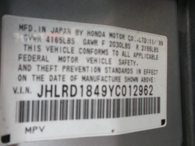 • VIN: JHLRD1849YC012962