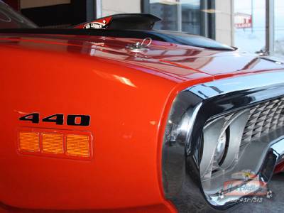 This specific GTX is a very fine example and its overall condition is excellent. This is a true RS23U1, a true GTX with 440 high performance engine slap stick automatic transmission, original Air Grabber hood and in its original Hemi Orange color and a nice fender tag.