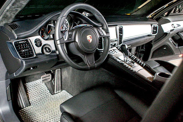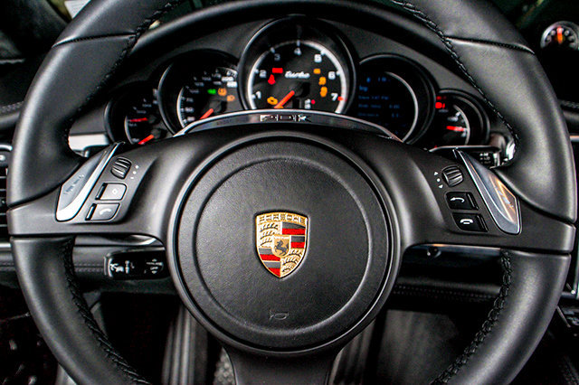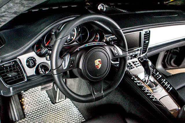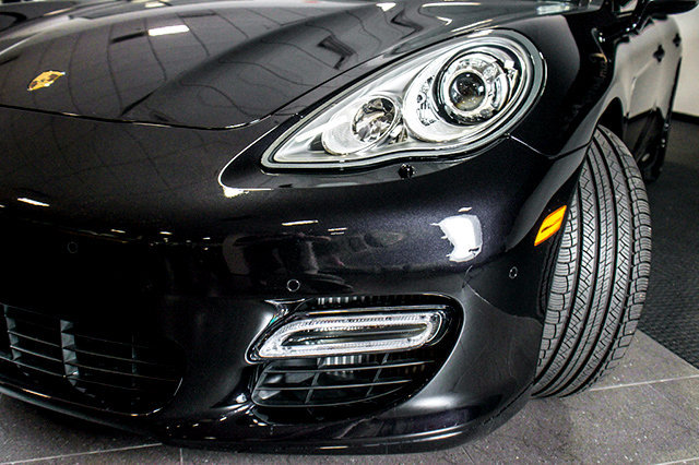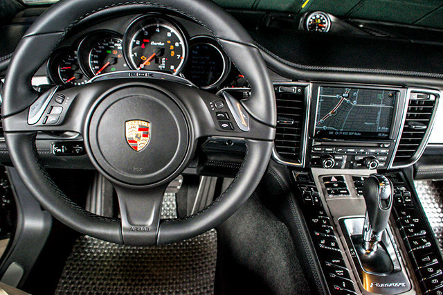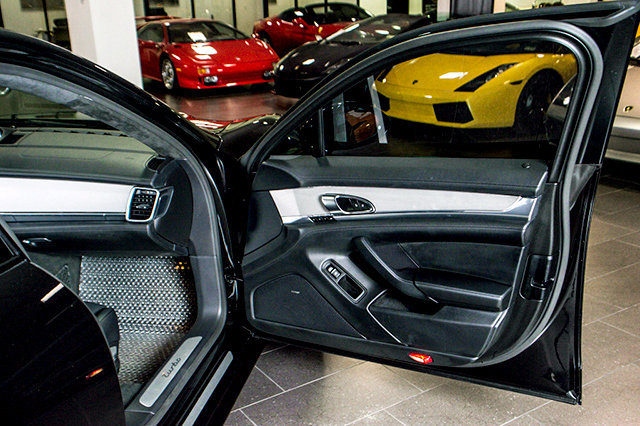 This is a smoke free Carfax certified 2013 Porsche Panamera Turbo sedan equipped with a 4.8L 520HP Twin Turbo V8 engine and a 7-speed PDK (auto & paddle shift) transmission. This car is finished in a gorgeous Metallic Black exterior color and Black full leather interior along with Alcantara headliner and Brushed Alluminum trim throughout.