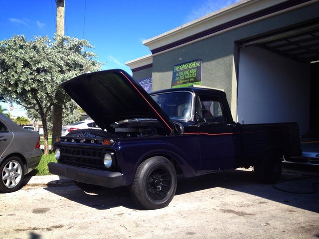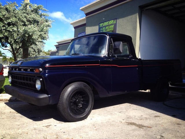 Up for sale is this beautiful 1965 Ford F-100 with a lot of custom work done to it. I purchased this truck from a Dealer on ebay. Since then I have done a lot of work to it in order to make it the beauty that it is now. I started by taking out the old transmission & having it completely rebuilt. Added a new flywheel & high-performance clutch. The truck has the shifter modified from the steering column to the floor. I replaced the older kit for a high performance heavy duty (eliminated all the annoying play that it had when trying to shift) Next,  my attention was directed into the engine. I replaced the radiator & added a fan that works constant with the engine (the engine works really nice & cool) also changed the carb. to a newer edelbrock carb. I also changed all the gaskets to high performance standards. All new spark plugs & cables recently changed & engine service has recently been performed. I decided to add a nice looking mate black edelbrock air filter. I had all the electrical wiring professionaly re-installed.